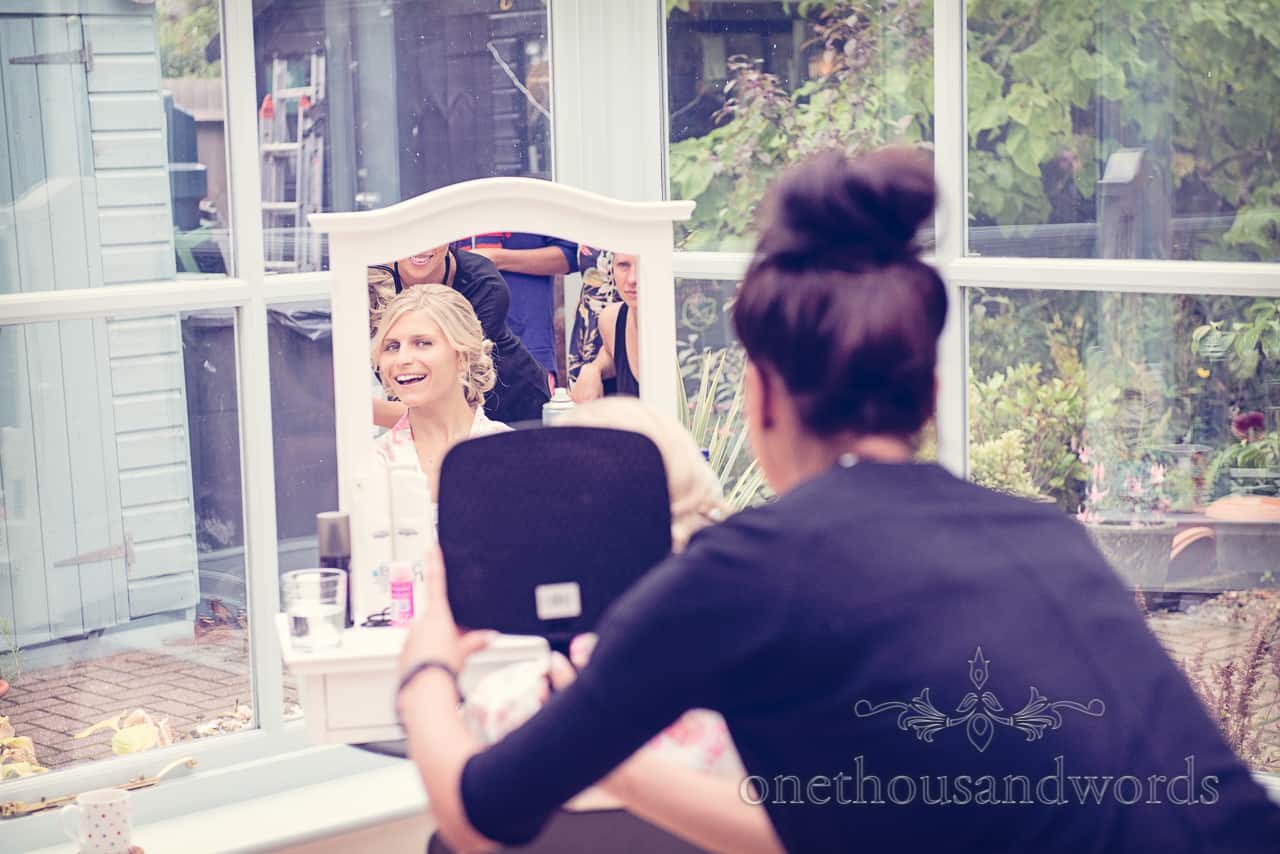 I arrived early on the wedding morning at Sarah’s family home in the Braishfield countryside. We found a group of beautiful ladies merrily busy with their preparations for the day ahead.