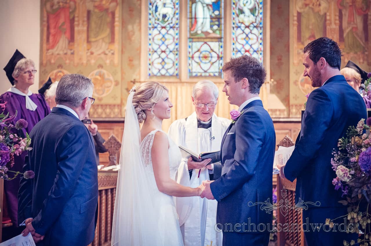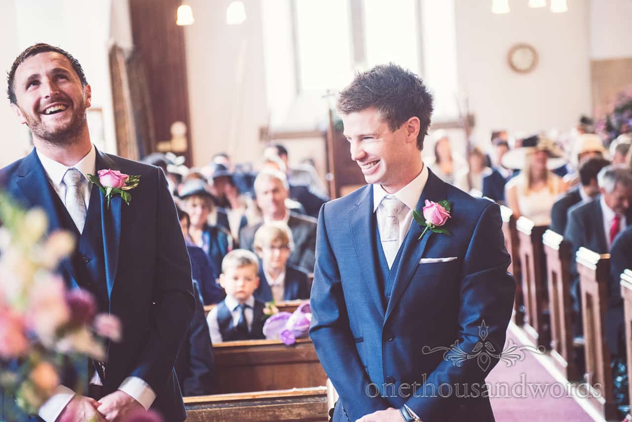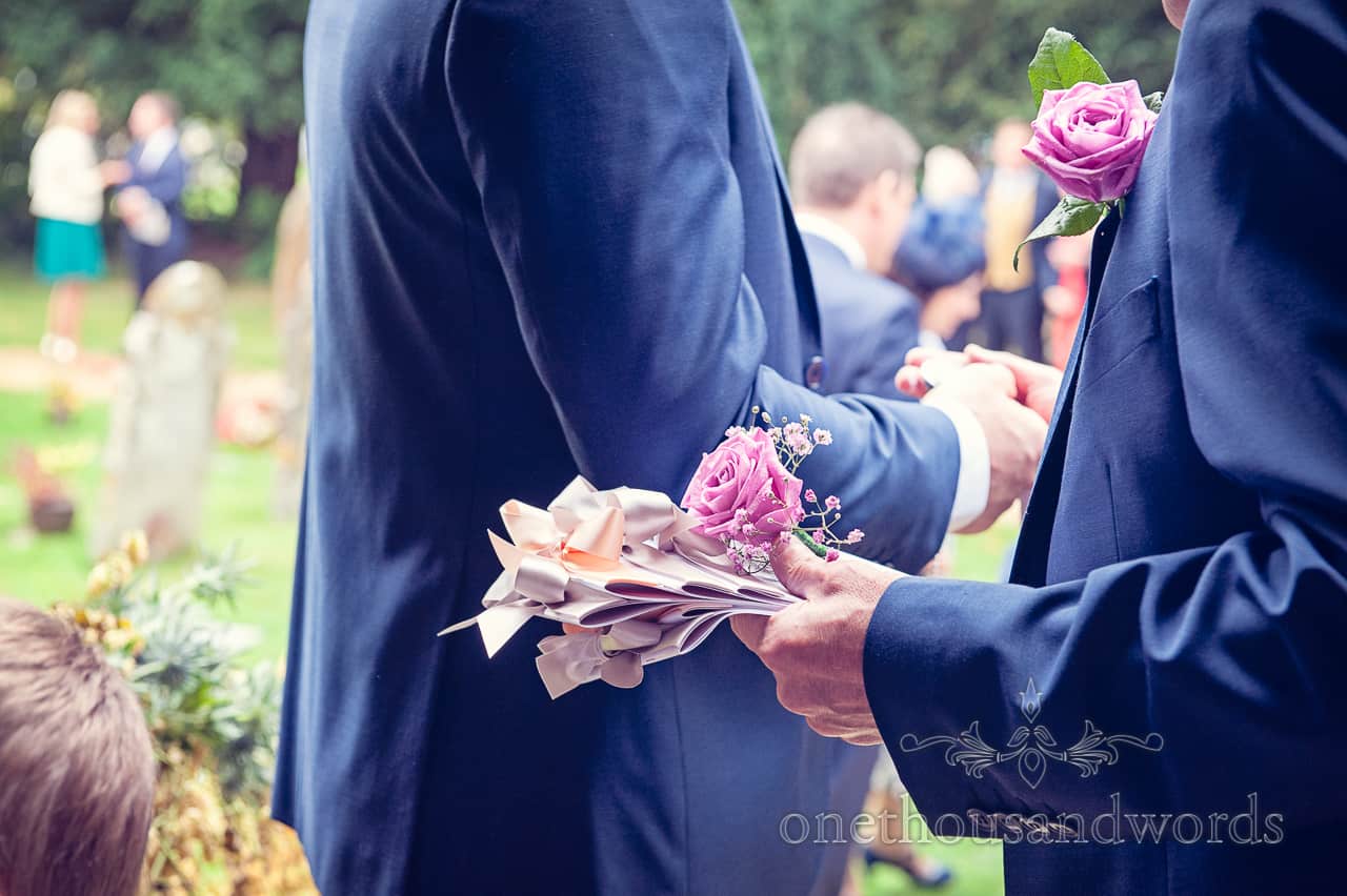 A quick trip to All Saints Church in Braishfield, and pastel pink button holes were applied. Handmade orders of service were diligently handed out by their page boy. Andrew, his best man and guests took their places amongst the beautiful sprays of pastel flowers adorning the church.