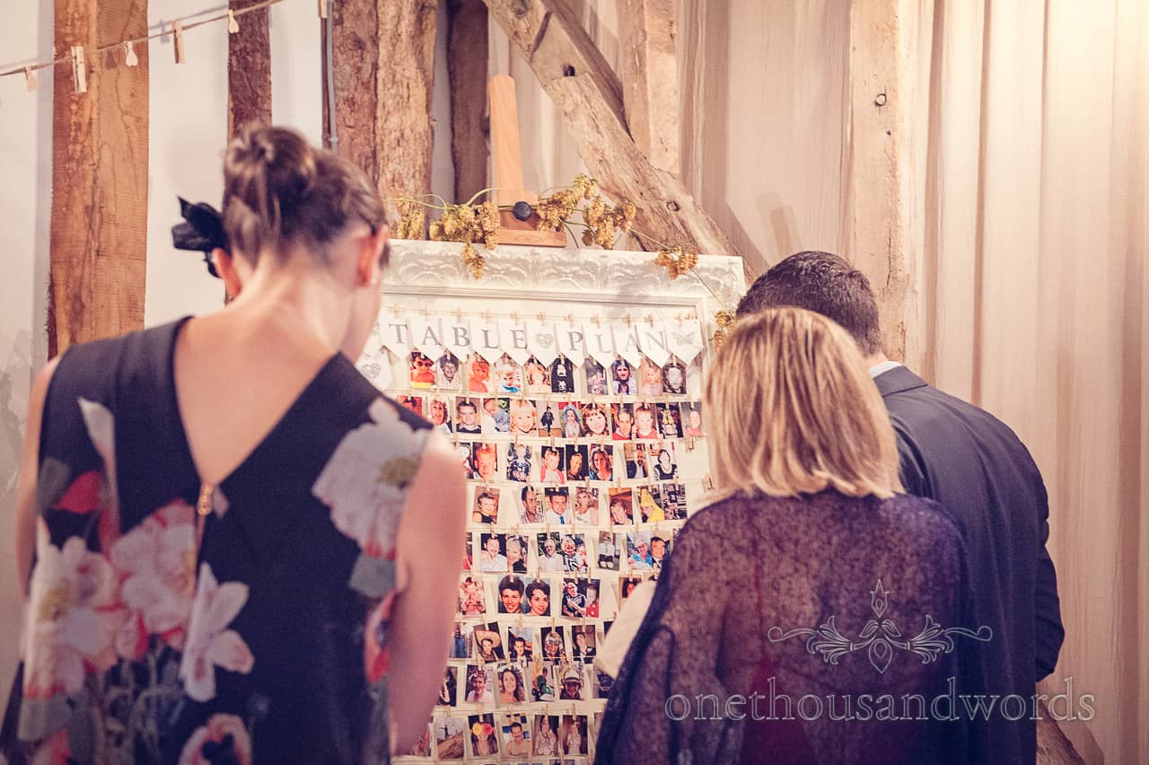 A hat string hung with pegs for guests to place their finest headwear. A white bicycle held the wedding cards basket. A huge table plan held passport-sized photographs of each of the guests. Some were much more embarrassing than others!