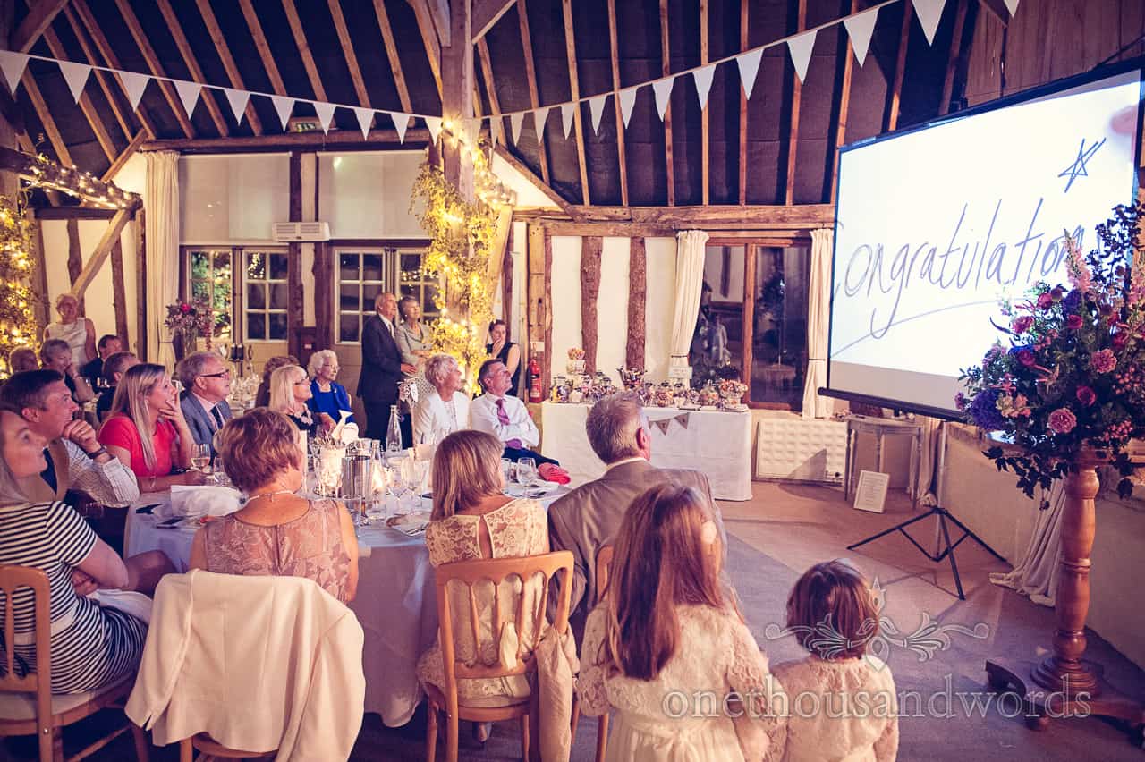 Once well fed on the tasty treats of Galloping Gourmet, the guests were treated to some truly tear-jerking and side-splitting speeches. Andrew’s best man presented a video of embarrassing photographs from the past. He included a marryoke video of friends and family singing along.
