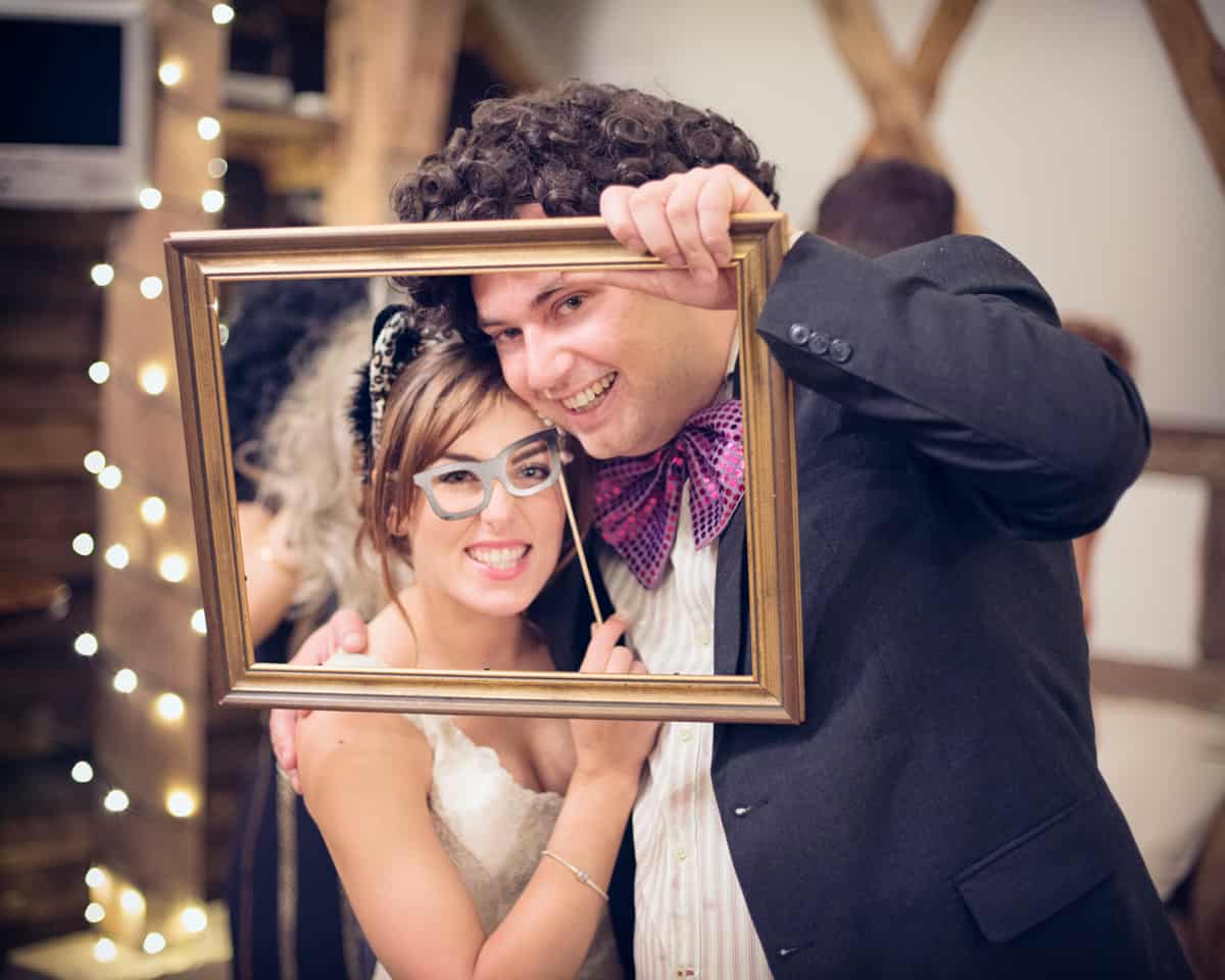 As the sun set oranges and reds over the garden, the DJ honed his skills, filling the dance floor for the rest of the evening. Just when we thought that there couldn’t possibly be any more thought gone into the day, we discovered that the guests had been provided with fancy dress. They had a retro picture frame to compose their own comedy photographs when they weren’t happily dancing away. I have to take my hat off to Sophie and James, their friends and family, and all of the Clock Barn and Perks catering teams. The wedding made for such beautiful, uplifting wedding photography. As predicted, I really did wish that I were one of the guests.