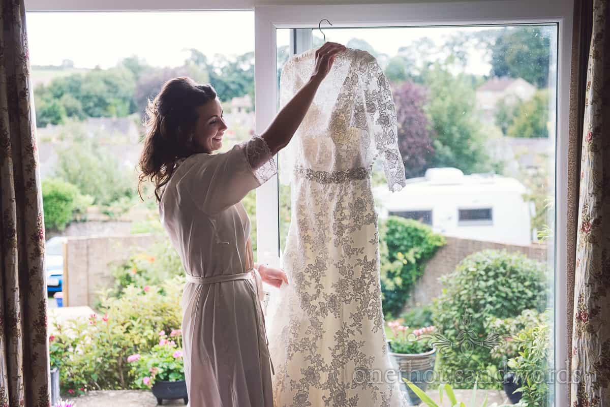 Murray and I arrived at Jess’ family home to take her Sherborne wedding photographs on her sunny wedding morning to the hustle and bustle of wedding preparations.